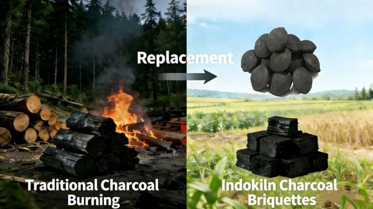 Produksi arang Indokiln memperkenalkan metode dan teknologi baru untuk memproduksi arang, menggantikan metode produksi arang tradisional. Metode pembuatan arang tradisional melibatkan pembangunan tungku arang untuk mengarangkan batang kayu, ranting, bambu, dan bahan lainnya. Hal ini menyebabkan banyak penebangan kayu. Selain itu, emisi gas berbahaya dan limbah cair telah menyebabkan kerusakan serius pada lingkungan.